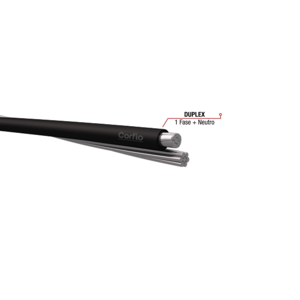 Cabo de potência multiplexado autossustentado corfio, projetado para circuitos de alimentação e distribuição de energia em tensões de até 0,6/1 KV, em instalações aéreas fixadas em postes ou fachada