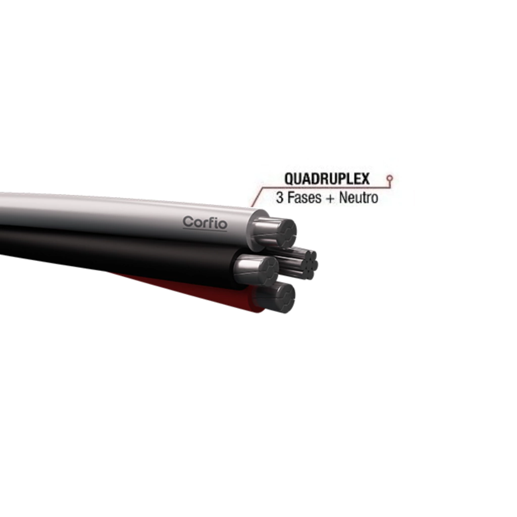 Cabo de potência multiplexado autossustentado corfio, projetado para circuitos de alimentação e distribuição de energia em tensões de até 0,6/1 KV, em instalações aéreas fixadas em postes ou fachada