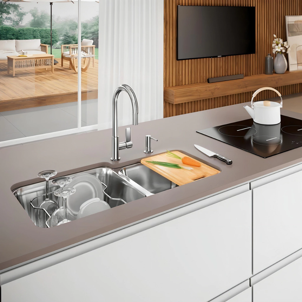 A Cuba Bell Franke, traz sofisticação e funcionalidade para a sua cozinha com design exclusivo.