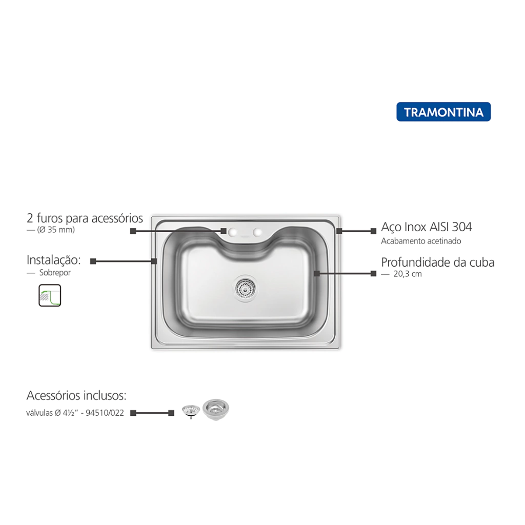 A praticidade na cozinha é o ponto central para as tarefas diárias ficam mais simples de serem cumpridas. A Cuba Tramontina Morgana 60 FX Undermount em Aço Inox com Acabamento Acetinado com Válvula 69x49 cm vai adicionar muita facilidade à sua vida e se encaixar perfeitamente no espaço que você precisa. Com estrutura de cuba simples produzida em aço inox, ela tem instalação muito fácil, possui 2 furos para torneira e profundidade de 20,3 cm. Seu acabamento acetinado garante muito mais praticidade, pois a torna super fácil de limpar. Um produto pensado para sua cozinha e para te fazer ter muito mais prazer em estar na cozinha!