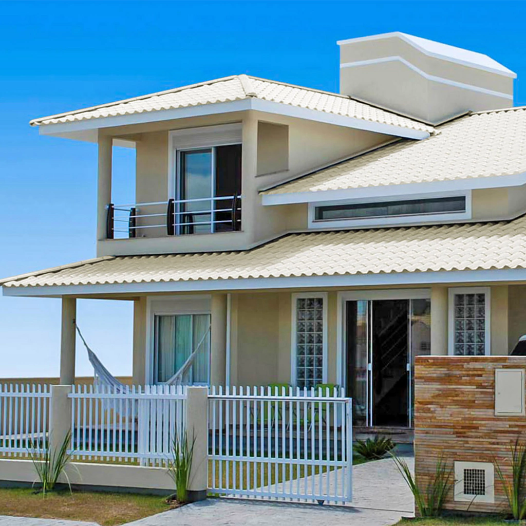 Versatilidade e charme definem as telhas Plan PreconVC. Além das opções variadas de cores, elas são laváveis e não absorvem água, mantendo a beleza do telhado por muito mais tempo.